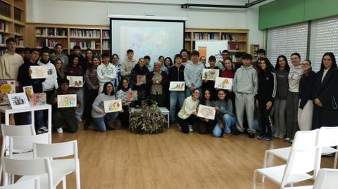 Caridad Camarero pasou polo IES de Baio con «Coralia e Maruxa». Antes xa estivera co club BaioLendo o autor e docente Fernando Castro
