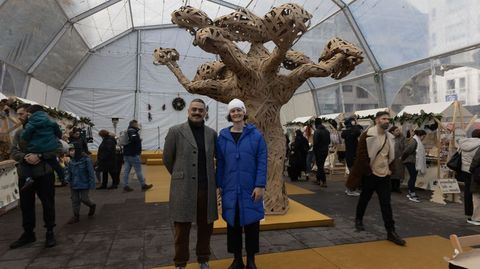 Comenzaron ayer en la carpa de la Praza de Carballo tres días de Feira de Artesanía. Arrancó con un inmejorable ambiente —animado a mediodía por Os Viqueiras—, obradoiros con plazas completas desde el minuto uno y hasta una inauguración-presentación, la del carballo que preside la carpa, una obra de Noelia Paz, autora también de la ya icónica mano del FIOT de este año. La acompañaron el alcalde, Daniel Pérez, así como los ediles Ramón Varela y Mar Eirís.