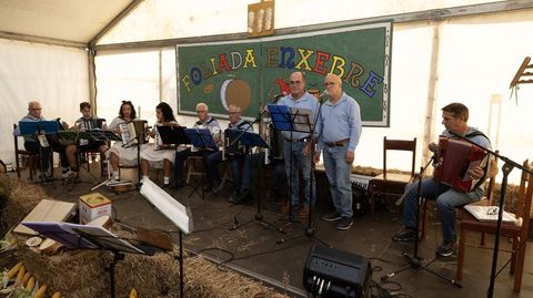 Acreditan un «rexurdir»: «Non hai máis que ver en calquera foliada a cantidade de nenos ou xente moza. É proba de que isto vai para largo, non é algo puntual nin unha moda». O que tiveron o sábado en Cabana foi a xuntanza do que chama «irmandade de grupos da comarca», todo baixo carpa, e fixeron ben. Entre as actuacións, «fenómenos» do acordeón como Eloy Mato, que fixo de ponte cara a foliada aberta, ou Irma Macías e Luís Pinto, actuación especial no medio dos grupos de tradición. Cantáronlle «bonito» á lingua e á cultura.