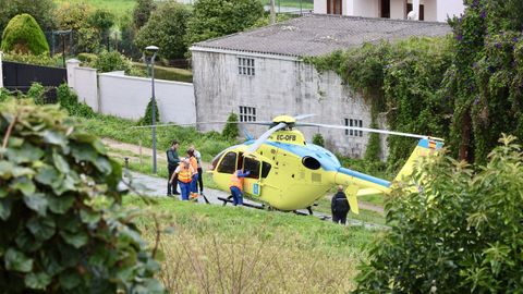El incidente se produjo en el edificio As Grelas, de Canduas, a la altura del cruce de Baio. Hasta el punto acudió la ambulancia de Ponteceso y el H3, con base en Santiago. Este último aterrizó primero en la Praza do Pendón, donde fueron recogidos el médico y una camilla. Luego, la aeronave tomó tierra al lado del inmueble de los hechos.