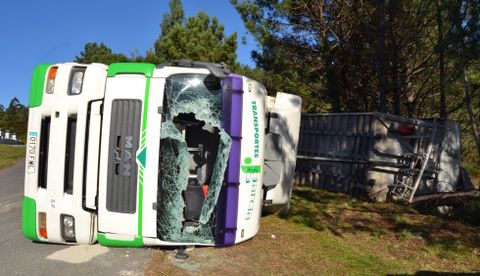 El siniestro más grave se produjo precisamente en Cee. Sucedió sobre las nueve y media de la mañana en una pista próxima al camp de fútbol San Paio de Refoxos. Un camión cargado de zahorra volcaba y sufría importantes desperfectos materiales. Su conductor y único ocupante J.?G.?A., de unos 50 años y vecino de Santa Comba, resultó herido. Se quejada de un fuerte golpe en la cabeza y en el hombro. Fue auxiliado en un primer momento por unos vecinos hasta que llegó la ambulancia para su traslado al Virxe de Xunqueira. Los bomberos procedieron a taponar las fugas de gasóleo y aceite y la Policía Local efectuó labores de balizamiento y de acordonamiento de la zona hasta que una grúa procedió a retirar el vehículo siniestrado, tareas en las que también colaboró Protección Civil. Todo apunta a que el percance se produjo cuando una de la ruedas del vehículo pesado invadió una zona de barro, provocando el corrimiento de la carga que, a su vez, derivó en que el camión quedase volcado.