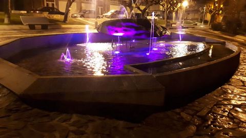El puente sobre el río Anllóns, en Ponteceso, y la fuente instalada en el casco urbano de Corme estarán estos días teñidas de color morado como símbolo de la solidaridad con la lucha feminista.