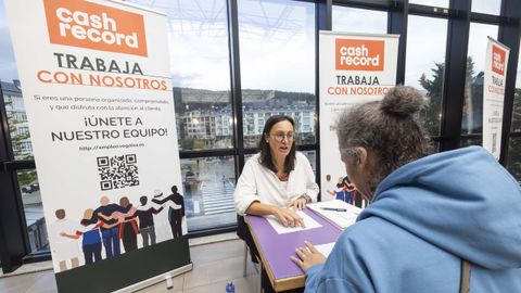 La ceense María Victoria Herrera Arias, de 31 años, fue una de las muchas personas que ayer se acercaron al centro comercial a dejar su currículo con la esperanza de que la contraten para el nuevo Cash Record. «Neste sector non teño experiencia. Máis que nada traballei como xerocultora, pero decidín cambiar de ámbito por tema de conciliación e horarios, porque teño un neno de nove anos», explicaba ayer por la tarde. Se enteró de la oferta por redes y decidió acercarse: «As rapazas de Vegalsa foron moi agradables. Oxalá haxa sorte e poida acceder a unha das vacantes», expresa.