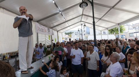 El artista, con hondo vínculo a la localidad, ofreció su discurso del «quinse» laxense subido a la barra de la cantina. Pero, primero, dio tres mensajes más que importantes