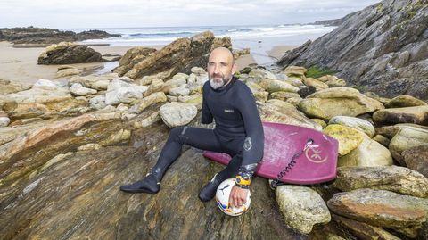 De todas formas, el bodyboard no es al único deporte que le dedica tiempo. «Eu nin paraba quieto de neno nin paro agora», reconoce. También le atrapó el atletismo, aunque lo que más le tira junto a la tabla es la pelota. «Volvín xogar en veteranos, pero era un pouco aburrido polo ritmo, así que fun para o Laxe, onde casei», indica. En Laxe pasó varias temporadas sorprendiendo a rivales y aficionados por su buen hacer en el lateral izquierdo, sobre todo por las dificultades que entraña el hecho de no disponer de un brazo para equilibrarse, afrontar una carga o hacerse poderoso en jugadas defensivas. «O mellor é non pensar moito nas limitacións e poñerse en acción. Ao principio claro que custa, pero cos anos xa o fas de forma totalmente natural», señala. Una situación, la suya, por la que nunca fue discriminado ni increpado en un campo de fútbol: «A verdade é que nunca tiven ningún problema con ninguén en ningún sitio», recalca, «aínda que é certo que hai veces que notas que se sorprenden, sobre todo os máis pequenos».