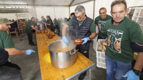 26 oct 2025 . Actualizado a las 13:43 h.«Un encontro coa nosa xente, coa nosa terra, cos nosos produtos»: así se reivindicó este sábado la 33.ª Feira das Fabas de Ponteceso, de iniciativa municipal. José Manuel Mato, alcalde, había deseado horas antes en Radio Voz buen tiempo, y buen tiempo otoñal tuvieron, tanto así que las fabas de Ponteceso se degustaron dentro de la carpa y en sus aledaños. Al frente de la gran olla, manos y pericia como la del cocinero Pablo Blanco, un histórico. A cualquiera le entraba por los ojos una de esas cazuelas revitalizantes.