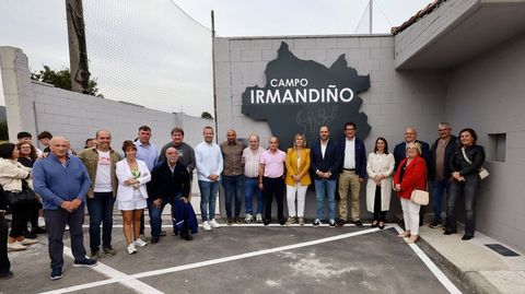 A continuación la alcaldesa vimiancesa, Mónica Rodríguez, y el diputado provincial de Deportes, Antonio Leira se encargaron de mostrar la placa conmemorativa. También estuvo el portavoz del gobierno de la Deputación, Bernardo Fernández. La institución financió el 70 % de la inversión necesaria. La regidora destacó especialmente la elección del nombre. «Representa o orgullo da nosa historia e identifícanos como concello. Cada vez que os xogadores entren neste campo levarán consigo un anaco da nosa identidade», dijo.