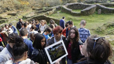 El Concello puso a su disposición unas tabletas con la aplicación ya descargada y los 40 escolares pudieron moverse a sus anchas por el yacimiento cabanés.