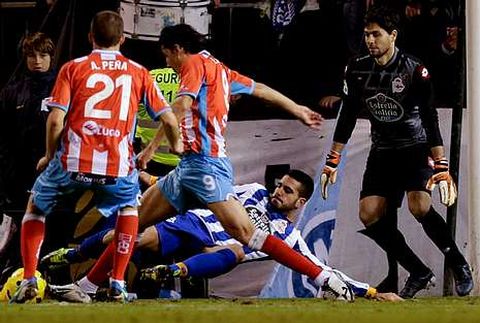 Enfrente, el dúo Pita - Seoane se compenetró mejor. El primero, que se retiró ovacionado por la grada, fue el futbolista con más presencia sobre el césped de Riazor. Un protagonismo en el que estuvo bien secundado por el santiagués, que se movió sin apenas estorbo por todo el campo. Además de entorpecer el trabajo de la zona de creación local, estuvo a punto de marcar un tanto similar al que logró la semana pasada ante el Sporting. La superioridad del Lugo en la medular se vio reflejada en la posesión: 65% - 35%, a favor de los de Setién.