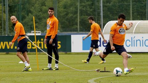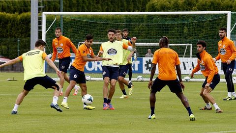 El entrenamiento de esta mañana fue el primero de la semana de cara a la preparación del derbi del sábado ante el Lugo en el Ángel Carro. Fernando Vázquez ha ensayado con el mismo once titular que el sábado pasado cayó ante la Ponferradina aunque con un ligero baile en las posiciones. Seoane pasó de lateral derecho a interior derecho, Luisinho de interior a lateral izquierdo, Rabello de mediapunta a interior zurdo y Sissoko de interior derecho a mediapunta.