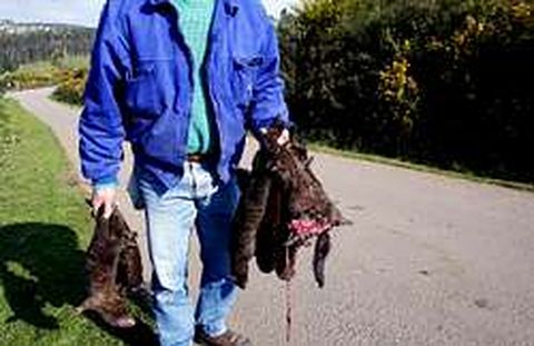 12 abr 2004 . Actualizado a las 07:00 h.Carral vive bajo el síndrome del visón fugado. En el municipio menos poblado del área metropolitana coruñesa se han instalado unos vecinos muy molestos y peligrosos para el resto de la población, animal o humana, de la zona. Son los alrededor de mil visones que siguen en libertad tras la apertura de sus jaulas en una granja del venteado monte Xalo durante la pasada Semana Santa. Los mustélidos, una raza peligrosa, que no cuenta con enemigos importantes en el ecosistema del Xalo que puedan poner fin a sus tropelías, vivieron su segunda jornada en libertad buscando las zonas más húmedas del municipio. Los primeros llegaron en la mañana de ayer a la orilla del río Barcia. Otros no pudieron sobreponerse al calor y a la falta de agua y se murieron por el camino. A los que sobrevivieron los buscarán hoy las cuadrillas municipales y de Medio Ambiente por las inmediaciones del río. Los ochocientos mustélidos que faltan son, además, un peligro en sí mismos. Todos son hembras, embarazadas, con una media de cinco crías por parto. «Algunas abortarán por el estrés, pero una jauría de estos animales, con lo voraces que son, constituye una amenaza para el ecosistema de la zona». Quien confiesa tal preocupación es Jesús Raso, el concejal de Medio Ambiente de Carral. Su jefe, el alcalde, José Luis Fernández Mouriño, le ha acompañado en los últimos tres días de caza y captura de visones. Aún no se le ha pasado la sorpresa de la primera jornada. Entonces, un vecino se le presentó por la tarde en el punto de coordinación de las cuadrillas. Traía un visón en la mano y pocas ganas de hablar. «Aquí va un bicho. Lo encontré en el bajo de mi casa y tuve que matarlo de un bastonazo. Tenía hambre y quería comerse a mi gato», dijo antes de tirar el ejemplar fallecido en el montón en el que se apilaban otro medio millar de ellos. Menos tranquilo está Roberto, propietario de una granja de ovejas contigua a la granja. «¿Y si se comen mis ovejas?», pregunta.