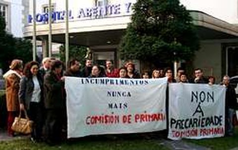 La comisión de centro de Atención Primaria convocó ayer una concentración en el hospital Abente y Lago por lo que califica de sinrazón, ya que la gerencia, según destaca, se niega a negociar las licencias y moscosos que se habían pactado. Aseguran que se impide disfrutar de estas libranzas en la época navideña. Apuntan que, al tratarse de personal no sanitario, sería posible contratar sustitutos para atender sus libranzas, pero simplemente se les niegan.