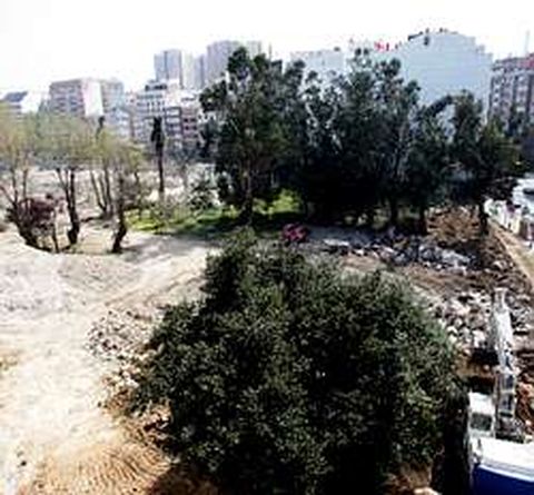 ? Las excavadoras derribaron ayer el muro que existía entre la avenida del General Sanjurjo y la Fábrica de Tabacos. El solar de la antigua factoría ya ha quedado prácticamente despejado en su totalidad, ya que también habían sido demolidos los tramos de Ramón y Cajal y Primo de Rivera. Los vecinos de General Sanjurjo contemplaban ayer con asombro la magnitud de la parcela, que se urbanizará con viviendas y equipamientos públicos. El jardín de la imagen se conservará.
