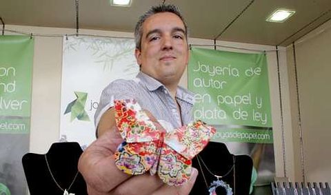 A Diego Ante se le reconoce por la marca Artesanía Galicia. «Mis piezas van desde un collar con un billete de dólar a modo de joya hasta llaveros o figuritas de geishas». Pero lo más llamativo son los materiales utilizados: billetes de 100 pesetas, papeles reciclados, materiales japoneses o papiros egipcios. «Yo mismo los elaboro, trato y tinto», apunta. Lo que comenzó como una pequeña afición se convirtió en un perfecto modo de vida. Ahora tiene puntos de venta en Lugo, Pontevedra, Madrid y Barcelona. Su impacto progresivo posibilitó que este año participara en la plataforma Ego, un escaparate para nuevas promesas del diseño que organiza la Mercedes Benz Madrid Fashion Week. También puede presumir de pinitos en televisión, donde inspiró la maqueta de un gran coche de papel.