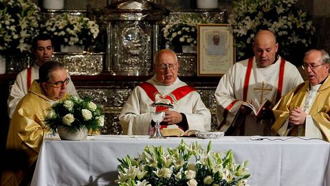 «Nunca me he arrepentido del camino que emprendí hace ya 50 años». Así define la dedicación con la que José María Fuciños, abad de la Colegiata, ha desempeñado su labor pastoral durante las últimas cinco décadas. Ayer celebró estas peculiares bodas de oro con una misa este sacerdote que también ejerció como profesor en el Masculino durante 32 años: «Pero de eso ya me jubilé. Del sacerdocio... Esto no tiene jubilación posible», apunta. Se muestra orgulloso de haber desempeñado su labor en su ciudad natal y recuerda sus inicios con nostalgia: «El Concilio Vaticano II me cogió en Roma, y es algo que recuerdo con especial cariño». A la hora de hacer balance, asegura que «hubo muchos momentos buenos y alguno malo, pero afortunadamente se han superado». Enhorabuena por este aniversario y que pueda celebrar muchos más.