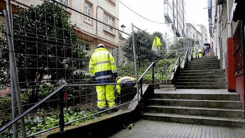 El plan de escaleras y ascensores, explicó el regidor, tendrá como modelo la construcción que ayer inauguró en Maestro Clavé. El alcalde, ya en plena precampaña como los líderes de los demás partidos, acudió acompañado de la concejala de barrio Mariel Padín y de varios residentes de la zona. Se paró a saludar a los trabajadores y al final de la presentación escuchó los comentarios de los residentes, que le explicaron otros problemas de la zona.