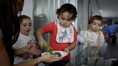 «Hablamos de alimentación complementaria», explica Beatriz Ferreira, directora de la escuela y miembro de un equipo que tiene, más que nada, vocación. Y la alimentación complementaria es eso, un complemento. Una iniciación. Una forma de descubrir el mundo. «Hasta el año de edad, lo que hace crecer a los niños es la leche», así que hay libertad. No hay necesidad de comerse todo el plato. Solo si quieren. O de acabarse las patatas o el arroz. Solo si ellos quieren. Porque aquí han venido a divertirse, a explorar, a descubrir uno de los mayores placeres de la vida: una buena comida.