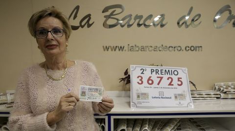 03 dic 2016 . Actualizado a las 13:51 h.«Si no viene a por el premio nos pondremos en contacto con él, porque igual no sabe que le tocó», comenta en Radio Voz María José, la lotera de la administración La Barca de Oro de la plaza de Pontevedra. Resulta que en el sorteo del jueves de la lotería nacional el segundo premio correspondió al número 36.725, del que se vendieron seis series (60 décimos) en este céntrico despacho. En total, 360.000 euros. «No está mal y además estamos muy cerca del gordo de Navidad, esto es como un aperitivo», relata María José, que dice que algunos los vendió por ventanilla y otros son de clientes habituales que siempre compran este número, como el afortunado al que hacía referencia que todavía tiene el décimo en la citada administración. Que sepa que 6.000 euros le están esperando en la plaza de Pontevedra.
