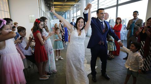 01 sep 2019 . Actualizado a las 21:07 h.Fue una boda en palacio, el de exposiciones y congresos de A Coruña. Sí, sí, el Palexco ayer se estrenó como salón nupcial para el sí quiero de una feliz pareja, Marta López Carro y Pablo Mosquera Novoa. «El sitio nos pareció espectacular, urbanita, moderno y con Coruña por montera, por lo cual me siento totalmente identificada con él», explicó la novia. Acompañados por su hijo Alejandro, familiares y amigos, celebraron la ceremonia religiosa en San Cristovo das Viñas. «Es una iglesia del año 1600, la elegimos porque están enterrados ahí mis padres», justifica la recién casada. Después, se acercaron hasta Palexco, donde los invitados disfrutaron de unos aperitivos en la terraza de magníficas vistas antes de sentarse a cenar. Hubo un momento muy especial, el de la suelta de más de 40 globos «con 34 niños, nosotros, y otros matrimonios que tienen un significado importante», explica. La gerencia del Palexco, un espacio que continuará con sus habituales congresos, simposios, exposiciones y eventos de empresa, celebró la elección de la pareja, que disfrutó de la atmósfera cálida y acogedora creada en el salón Sotavento para dar servicio a otro tipo de eventos sociales, como el banquete de boda de Marta y Pablo.