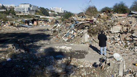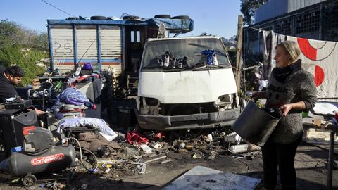 Encontrar un pedazo de tierra para que los feriantes guarden sus atracciones y los ferreteros trabajen el aluminio, el cobre o el hierro es el principal obstáculo. «No vamos a subir el material a un piso», dice Teresa, que hasta ahora, pese a que ya reside en una vivienda, acude todos los días al poblado a echar una mano. Son montañas de materiales que hay que tratar y preparar para llevar a la chatarrería y, ante el inminente desalojo se encuentran con otro problema. Lo explica un hombre que nació en el asentamiento y que también se llama Carlos: «La cosa es que en la chatarrera hay gente con el covid y no nos pueden recoger el material. A ver si nos dan unos días más». Pero eso, seguramente, se arreglará. Lo importante, es que en unos días, tanto la joven familia de Carlos como la del patriarca Gonzalo dejarán de vivir ahí y con ello se podrá decir que en A Coruña ya no hay poblados chabolistas.