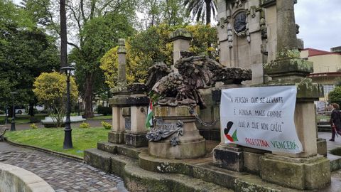 20 abr 2025 . Actualizado a las 13:15 h.Varios de los monumentos que hay repartidos por los jardines de Méndez Núñez de A Coruña amanecieron este domingo con banderas y mensajes de apoyo a Palestina. Las esculturas en homenaje a figuras como Concepción Arenal o Emilia Pardo Bazán fueron algunas sobre las que se colocaron distintos lemas.