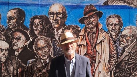 El escritor Arturo Pérez-Reverte descubrió esta semana en el callejón Arévalo que va del Cantón Pequeño a la calle Alameda el mural de ocho metros en el que aparece homenajeado junto a otros 38 escritores