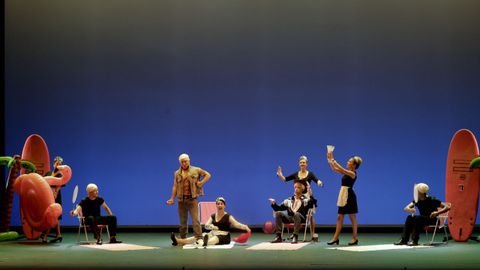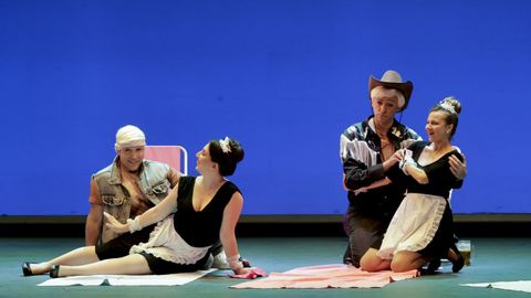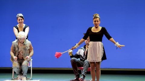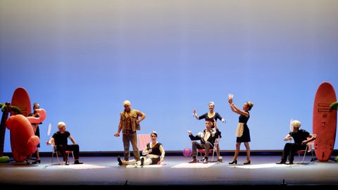 Aliverta, sobre escenografía minimalista con aires de cómic, trabaja arquetipos movidos como muñecos, apostando por una comedia básica y funcional. La propuesta es sencilla y honesta; y, aunque resulte algo desnuda, sirve al objetivo sin esconder la economía de medios de un montaje capaz hasta de reírse de sí mismo, que mejora en la segunda parte. ¿Se podría encargar a la ESAD de Galicia? Seguramente, pero eso no invalida lo presentado.