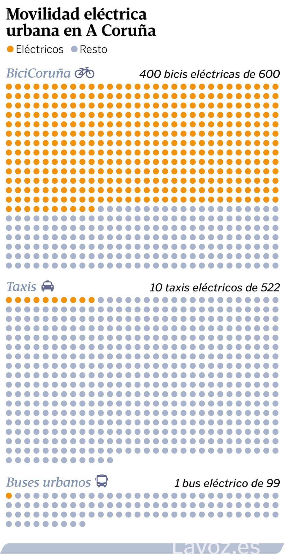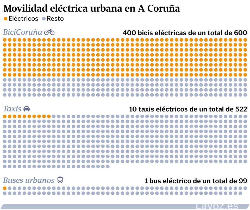 22 oct 2025 . Actualizado a las 05:00 h.La movilidad urbana con cero emisiones es una realidad cada vez más presente en A Coruña. La Compañía de Tranvías está en pruebas de un nuevo modelo eléctrico articulado. Las unidades con pedaleo asistido ya suman las 400 en Bicicoruña. Y el taxi electrificado ha crecido un 900 % en los últimos cinco años. Una apuesta oportuna que hace frente a nuevos operadores como Uber o Bolt, que desembarcó en la ciudad en septiembre con una flota totalmente limpia.