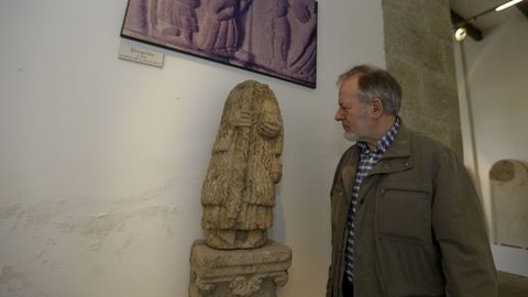 En este mes de Santiago -como algunas personas nombran a julio-, el pensamiento se va a Compostela, a la tumba del apóstol, y a los peregrinos que allí llegan. Pero As Mariñas también tiene un lugar para visitar al pescador de Galilea y es en el mencionado Museo das Mariñas. Ahí se puede ver una escultura única de Santiago Peregrino «la representación más antigua de esta figura en Galicia», indica la información oficial del centro museístico. «Cando estaban arranxando o edificio do antigo mosteiro de San Francisco apareceu esta figura», explica Alfredo Erias, director del museo, del archivo y la biblioteca municipal de Betanzos. «Estaba cuberta por unha capa de area para protexela», recuerda. En esta escultura el apóstol Santiago viste «con capa de pel de ovella. A referencia é a imaxe dos peregrinos, e a dos pobres, que aparecen nas cantigas de Alfonso X». Esta es una obra del siglo XIV elaborada «con gran nivel técnico e de calidade. Unha peza única en Galicia», sostiene Erias.