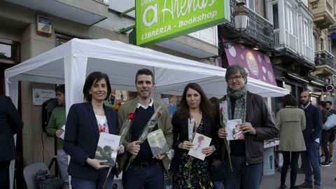 24 abr 2018 . Actualizado a las 12:00 h.«¡Mamá! Voy a la biblioteca de niños que es la más bonita». Esto decía un crío arrastrando a su madre hasta el fondo de la librería Arenas. Allí, con El Principito vestido por distintas editoriales mirando desde lo alto, el pequeño insistía: «¡Mira qué bonito!». Y, claro, salió con un libro bajo el brazo. Ocurrió ayer en librerías y bibliotecas; de estas últimas, las municipales ofrecían la opción de llevarse lecturas, música y películas sin límite de cantidad. Con todo ello fueron muchos los usuarios de unos y otros establecimientos los que aprovecharon para surtirse de lectura, al menos para este mes de abril, aunque por parte del BNG se calificaba de «escasísima» la programación de la concejalía de Culturas. Algunos de ellos lo hacían con los libros que firmaban sus autores en la tarde-noche en la librería Arenas. Allí estaban Marga Rosende, con El color del cristal con que me miras o Las huellas de la memoria; Juan Mariñas, con Alguien que te quiera, Migas de pan o Piel de salitre; Begoña Peñamaría con Las horas no contadas, Claves para vestir bien o Una vida esperando, y Luís Pousa con Poemas para Flash Gordon, El ombligo del mar o La noche de las palabras.