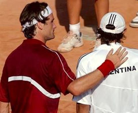 España está a un paso de su cuarta final de Copa Davis tras la disputa de la primera jornada de la semifinal ante Argentina. Ferrero y Moyá pusieron el 2-0. En Andalucía suelen apelar al mal fario cuando las cosas no van bien. A partrir de ahora, quizá se les sumen los argentinos. La mala fortuna se cebó a fondo con Argentina. Primero, con las lesiones de Coria y Nalbandián. Después, ayer, con los problemas físicos de Zabaleta y el desmoronamiento de Gaudio. España abrió brecha. Juan Carlos Ferrero, como cabía esperar, hizo honor a su condición de líder mundial y se impuso a Gaston Gaudio (32), con el que había perdido en cinco de los nueve partidos disputados. El de Onteniente ganó en dos horas y dos minutos por 6/4, 6/0, 6/0. Por su parte, Carlos Moyá (6 del mundo) sacó provecho de los calambres sufridos por Mariano Zabaleta (24) al que superó por 5/7, 2/6, 6/2, 6/0 y 6/1. Hoy (12.30 horas, La 2) se jugará el doble: Corretja y Costa contra Calleri y Arnold. Juan Carlos Ferrero tuvo un arranque cargado de nerviosismo e incluso reconoció estar un pelín fallón durante los cuatro primeros juegos. Gaudio llegó a despegarse con ventaja de 3/1 y 40/15. Servía él. Estaba en vena de aciertos y a partir de esa situación se produjo su cambio radical. Entró en barrena. Ya no fue el mismo. Quedó a merced de un Ferrero cada vez más repuesto de sus desajustes en la apertura. El valenciano necesitó 64 para hacerse con la primera mangas. A partir de ahí, Ferrero humilló a un Gaudio. Encadenó errores en cantidades industriales. El español, por contra, subió el tono de su irresistible juego. A Gaudio le traicionó el saque como nunca. Sirvió once veces y perdió diez el servicio. Peor, imposible. La superioridad de Ferrero quedó patentizada en el segundo y tercer sets, en los que aplicó a su desmoralizado rival un par de roscos. Su dominio fue tan rotundo, que su adversario llegó a perder catorce juegos seguidos. Ferrero culminó su legítima victoria con una volea de derecha. En cuanto a Carlos Moyá, parece que vino a verle un hada milagrosa; jugó mal durante los dos primeros sets, totalmente dominado por un Mariano Zabaleta empeñado en no conceder tregua con su juego tenaz. El argentino tuvo dos sets a favor. Tenía allanado el camino. El revés de Moyá fallaba como una mala escopeta de feria. Zabaleta se situó con un marcador favorable de 7/5, 6/2. En el tercero empezaron sus desdichas. Fue en el quinto juego. Quiso llegar a una dejada de Moyá y al conectar la pelota, en posición forzada, notó un calambre en la pierna izquierda. Fue el punto de partida hacia su irrefutable derrota. Zabaleta quedó roto por completo. Llegó a temerse su abandono. El hombre, sin embargo, aún a riesgo de agravar su problema, mantuvo el tipo, pero acabó hundido.