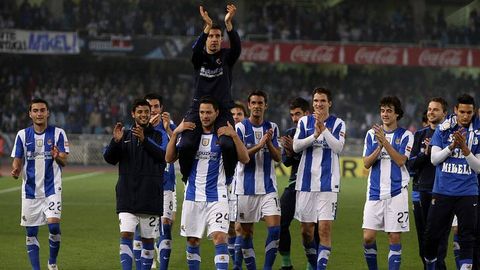 Incidencias. 27.000 espectadores en el estadio de Anoeta. La afición se entregó en su apoyo al capitán Mikel Aranburu en su despedida sobre todo cuando fue sustituido por el joven Rubén Pardo.