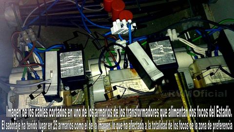 El Rayo Vallecano ha presentado una denuncia en comisaría por estos hechos, en la que se señala que pudieron ocurrir entre las 19:00 horas del pasado jueves y la misma hora de ayer domingo, que fue cuando, al hacer las pruebas de iluminación del campo, se comprobó que las 57 luminarias de tribunal no funcionaban. La inspección ocular realizada a continuación permitió descubrir que alguien había cortado los cables de esas luminarias y manipulado los doce cajetines que les suministran electricidad. El presidente rayista ha insistido en que lo ocurrido es «un acto de vandalismo estudiado y premeditado hecho por alguien muy preparado».