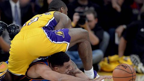 Bryant, demasiado fallón. World Peace, sin puntería. Robert Sacre, incapaz en la pintura. Los Lakers eran un juguete en manos de Oklahoma, que disfrutaba al son de un imperial Durant.