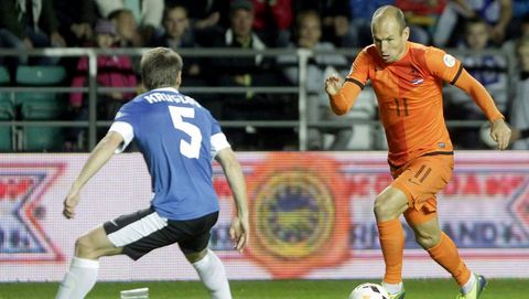 Holanda pinchó y cedió sus dos primeros puntos en toda la fase de clasificación. No pasó del empate en Estonia (2-2), y lo hizo con incertidumbre, con un gol salvador en el descuento de Robin Van Persie. Pese al pinchazo, es primera y saca seis puntos a Rumanía, que dio un palo a Hungría con un contundente 3-0. Parece que el combinado «magiar» se quedará otra vez sin Mundial. No juega uno desde México 1986. Cada vez tiene menos opciones de ser segundo.