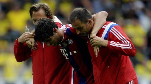 El internacional español chocó con un rival en el minuto 30 de la primera parte cuando trataba de rematar de volea un saque de esquina. Javi Martínez tuvo que ser sustituido de inmediato por Dante y se retiró en camilla con claros signos de dolor y hielo en su rodilla izquierda.