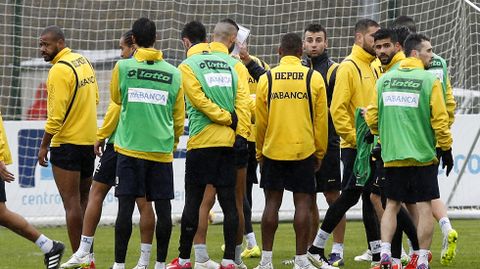 El actual preparador de porteros del Dépor, Manu Sotelo, que trabajó en el Celta hasta hace dos años, dirigió el ensayo de la estrategia previa del partido