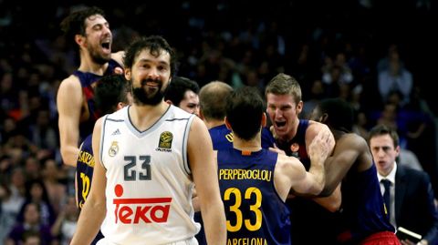 A falta de cuatro minutos y medio, el equipo azulgrana estaba por delante en el marcador, 71-75, y tenía la ventaja moral de venir de muy atrás ante un Real Madrid que, en ese momento, estaba contra las cuerdas.