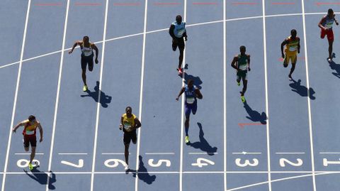 Poco después de la exhibición de Hortelano, Usain Bolt regresó a la pista para cumplir el trámite de la primera ronda de 200 metros, dos días después de convertirse en el primer atleta de la historia que conseguía tres oros olímpicos en los 100. Con rostro que reflejaba cansancio, se limitó a cubrir el expediente con una marca de 20.28. Su principal enemigo, el estadounidense Justin Gatlin obtuvo su clasificación con casi tanta facilidad, ganando la quinta serie con 20.42, camino de un nuevo duelo con Usain, esta vez en la distancia que con más holgura domina el jamaicano y, por tanto, con el segundo puesto como objetivo máximo.
