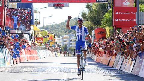 Ciclismo Raúl Alarcón, compañero de Veloso en el F.C. Porto, se viste de amarillo en Portugal gracias a su triunfo y bonificación en Setúbal, con el estradense a 6 segundos