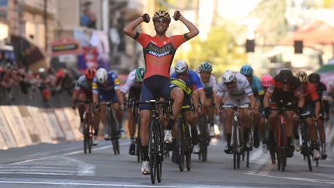 En la bajada, la habilidad del italiano fue fundamental para mantener la escasa renta, siempre por debajo de los 15 segundos. Los intentos de su compatriota Matteo Trentin (Mitchelton-Scott) reavivaron el ritmo del pelotón y obligaron a sufrir cada centímetro a un 'Tiburón' que se tuvo que enfrentar en el tramo final llano a los equipos de los sprinter puros, en busca de sus bazas.