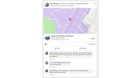 Otra persona le respondió a su comentario: «¿Falto de rodaje con el ILS? ¡No puedo creerlo!». A lo que Ibbotson responde: «Creetelo. Lo llevo mejor arriba... Mejor que abajo».