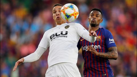 Valverde, con Suárez operado en mala hora y sin delanteros en la nevera, quiso resolver por el centro, sabiendo que a cualquier incursión por banda le faltaría rematador. Marcelino respondió con dos. Gameiro aprovechó el centro atrás de Gayá y Rodrigo puso la cara a un inteligente pelotazo de Soler. Para cuando el entrenador azulgrana reparó en los costados había poco que hacer. Lo intentó Malcom y también Piqué, metido ya desde el 54 en la piel de goleador. Estuvo a punto de hacerse con ella quince minutos después. A Vidal, la otra opción en el área, le falta vuelo, y al muro de contención valenciano le bastó con rodear al 10 rival cada vez que Alba se aproximó al área con balón.