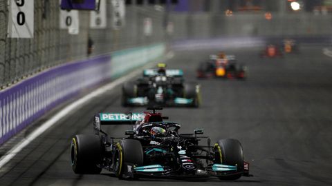 La guerra entre el heptacampeón del mundo y el holandés vivió este domingo uno de sus capítulos más calientes en Yeda. Se intercambiaron adelantamientos y toques en un ambiente de alta tensión en la pista y los garajes. La cuestionable actitud de Mad Max, primero frenando ante el inglés cuando le intentaba superar y después al dejarle pasar -obligado por la FIA- de una manera en la que volvió a adelantarle en la frenada, hicieron temer lo peor en el trazado saudí.