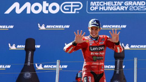 La de Márquez no fue la única remontada del día. Pedro Acosta le dio la vuelta a un fin de semana que se le complicó sobremanera el sábado. Parecía el único rival del de Ducati en Hungría, pero sendas caídas en la clasificación y en el esprint le habían dejado tocado, que no hundido. Desde la séptima posición de la parrilla, el de Mazarrón acabó segundo, en su mejor resultado del año.
