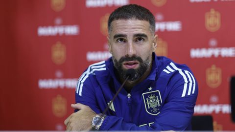 Además, satisfecho por poder regresar a la alta competición, repasó el largo proceso de recuperación que ha tenido de su grave lesión de rodilla: «Estoy contento. Podemos decir que lo hemos superado con éxito, con objetivos a corto plazo. Feliz de volver a estar aquí, de vestir la camiseta de la selección. Quien me conoce sabe que esto para mí es la repera», afirmó Carvajal.