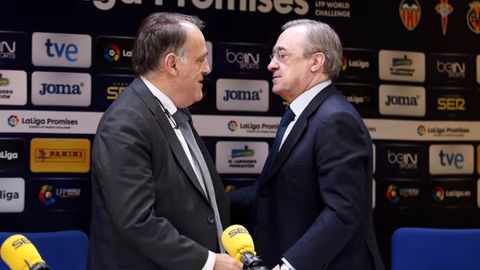 Lejos de hacer autocrítica, el presidente de la patronal, en su única explicación pública tras la cancelación del partido de Miami, responsabilizó directamente al club blanco y a su presidente, sin nombrarlos. Tebas no dudó en denunciar que ahora apelan a la «integridad de la competición» los mismos que llevan años cuestionando esa misma integridad, presionando a árbitros, a gobernantes, construyendo relatos distorsionados o utilizando la presión política y mediática como herramienta deportiva«.