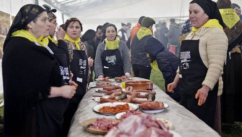Ni las borrascas ni las ciclogénesis explosivas pudieron con la matanza celebrada al pie de la antigua fábrica de papel de Rodís, una de las primeras de Galicia y que estuvo en funcionamiento 120 años. Los hornos de una dependencia anexa sirvieron de escenario para la recreación de labores tradiciones como el amasado y el cocido del pan o las labores de costura. Allí se reía Nerea, que ayer cumplía tres meses, y que recibía los piropos de todos los que pasaban y se rendían a sus encantos al verla tan guapa vestida a la antigua usanza con su pañoleta, su falda negra y su chaleco, para orgullo de su madre y su abuela. Junto a la chimenea se exhibían mil y un postres elaborados con cariño por las mujeres. Mil y una cañas de crema, leche frita, delicadas orellas, flores, rosquillas, filloas, tartas y flanes.