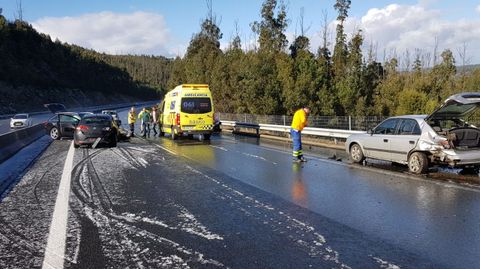 En la AP-53 se produjo pasadas las 14.00 horas un accidente en el que se vieron implicados cinco turismos y que se saldó con cuatro heridos leves. El suceso tuvo lugar en el kilómetro 21 de la AP-53 a su paso por la parroquia estradense de Orazo, sentido Santiago. La causa fue una granizada y el hielo caído en la carretera que desencadenó una múltiple en la que se vieron implicados cinco turismos que sufrieron daños materiales de distinta consideración. Los heridos fueron traslados en una misma ambulancia a Santiago de Compostela. Uno de ellos sufrió un golpe en un brazo y los demás diversas magulladuras. Hasta allí se desplazó la Guardia Civil de Tráfico, los Bomberos y efectivos de Emerxencias de A Estrada.
