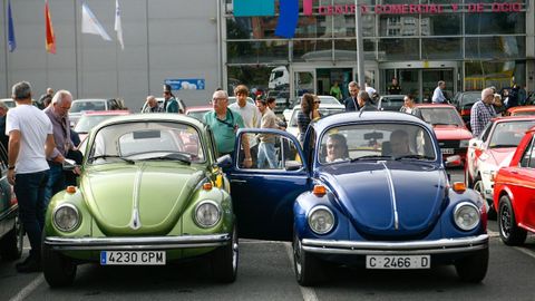 A primera hora de la mañana los participantes de la XIV Concentración de Coches Clásicos de Lalín organizada por la escudería O Toxo se dieron cita en el aparcamiento del centro comercial Pontiñas. Desde allí partieron hacia Combarro donde les esperaba un paseo en catamarán y una mariscada en el restaurante O Remo. foto M. SOUTO